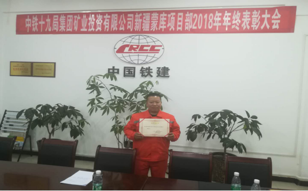 1月13日,中鐵十九局集團投資有限公司新疆蒙庫鐵礦項目部召開2018年度精神文明工作會議及年度表彰大會,我單位為精神文明活動深入發(fā)展做出積極貢獻受到表彰。我單位被授予2018年度精神文明班組稱號。
